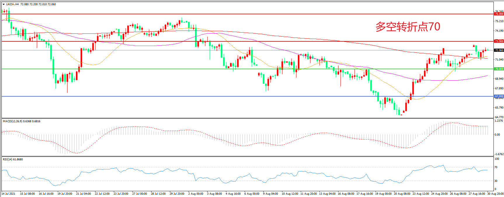 多空转折点:70.00