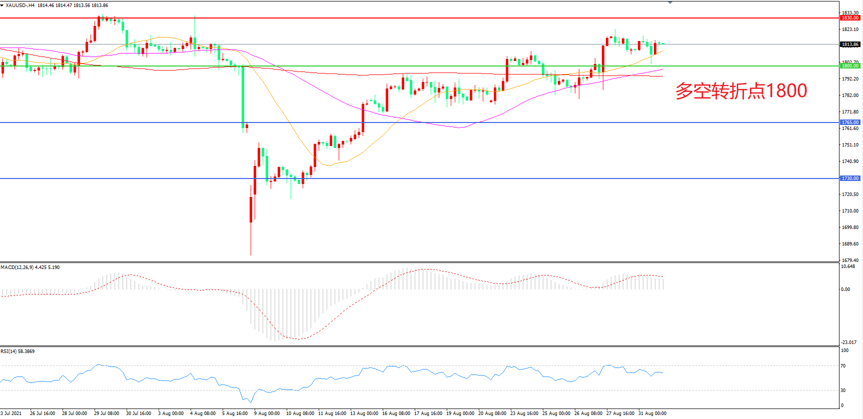 多空转折点:1800.00