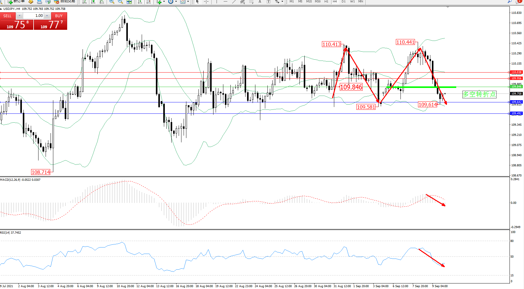 交易策略:109.846下方看跌,目标109.642、109.492