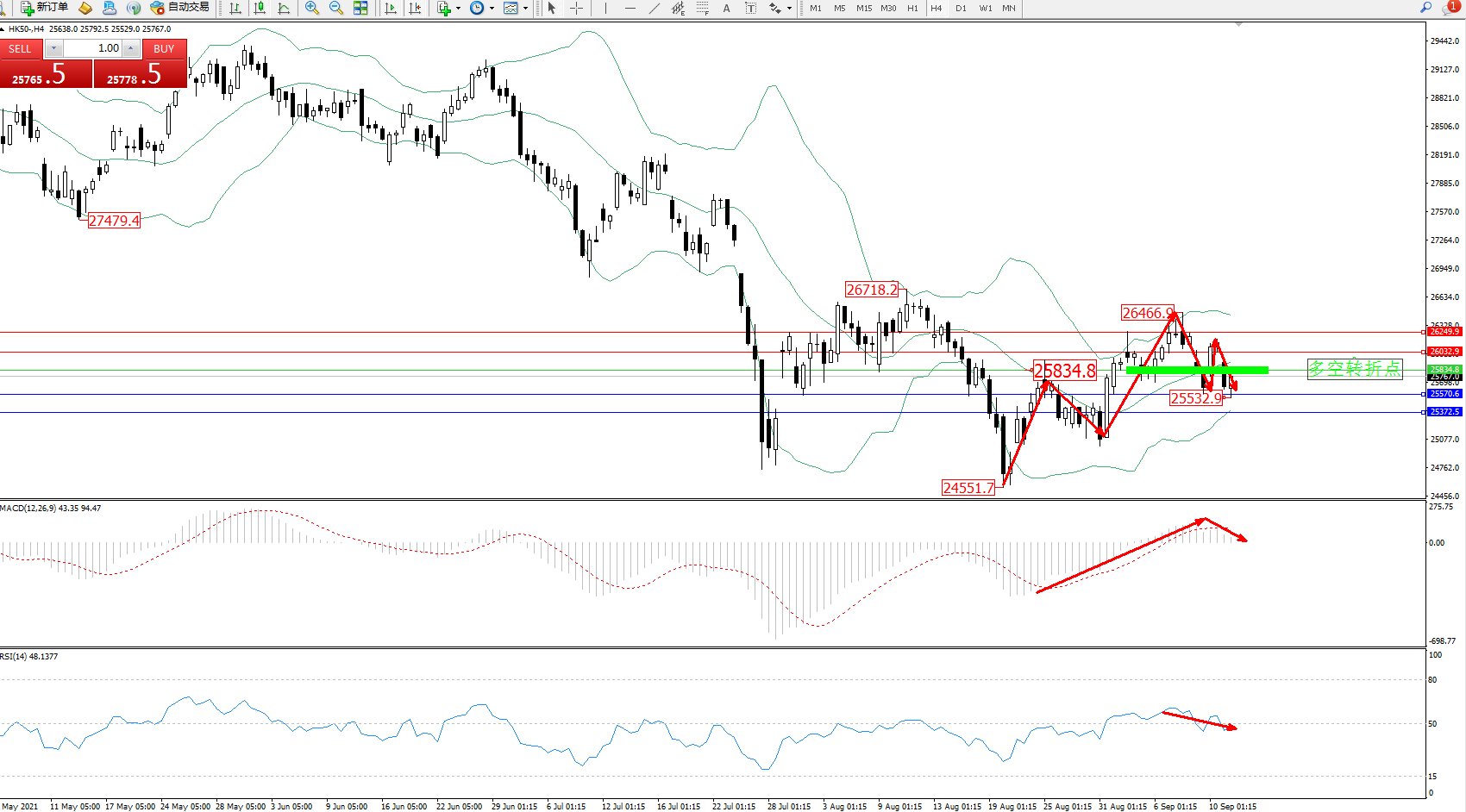 恒指HK50 ——4小时K线图显示: