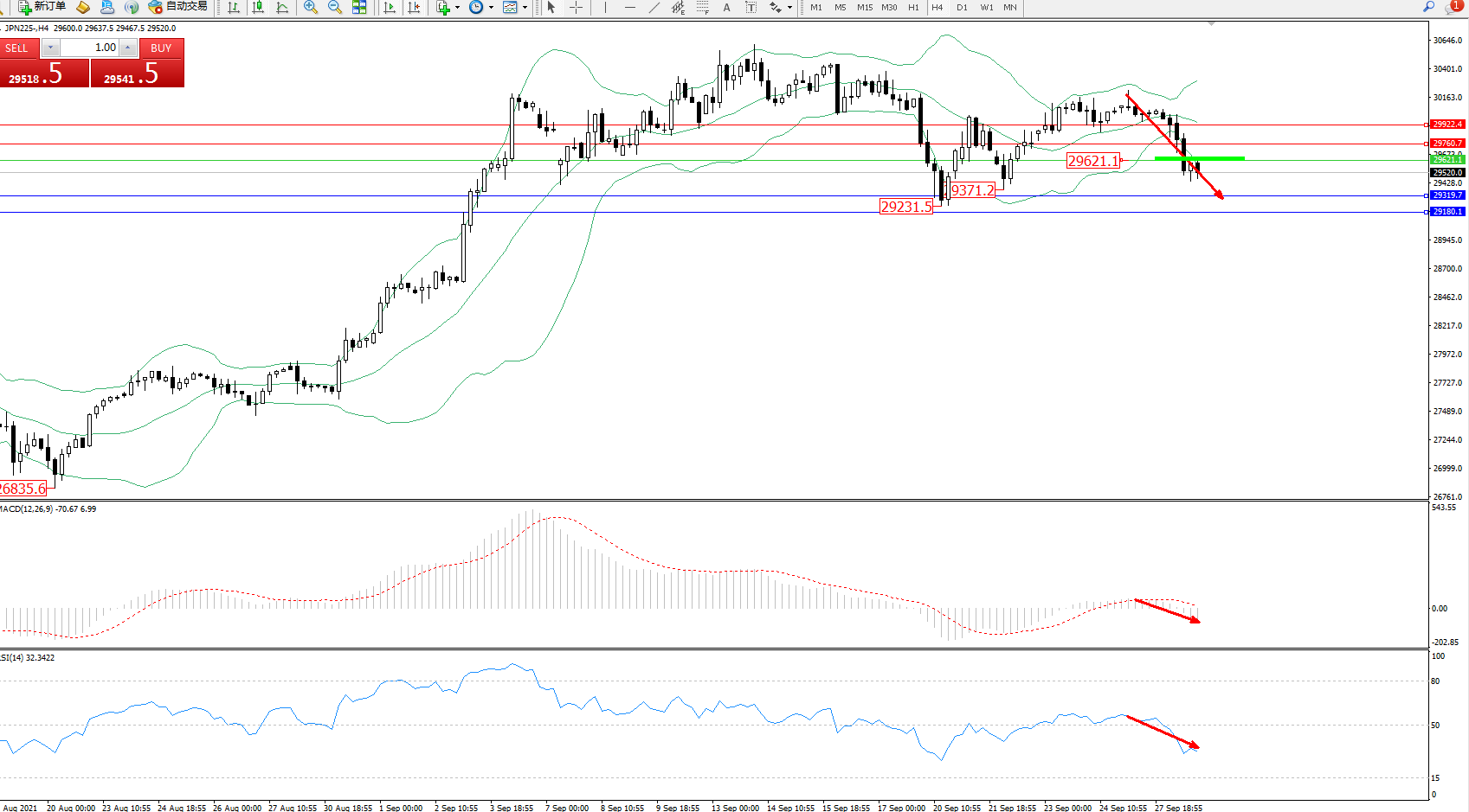 交易策略:29621下方看跌,目标29319、29180