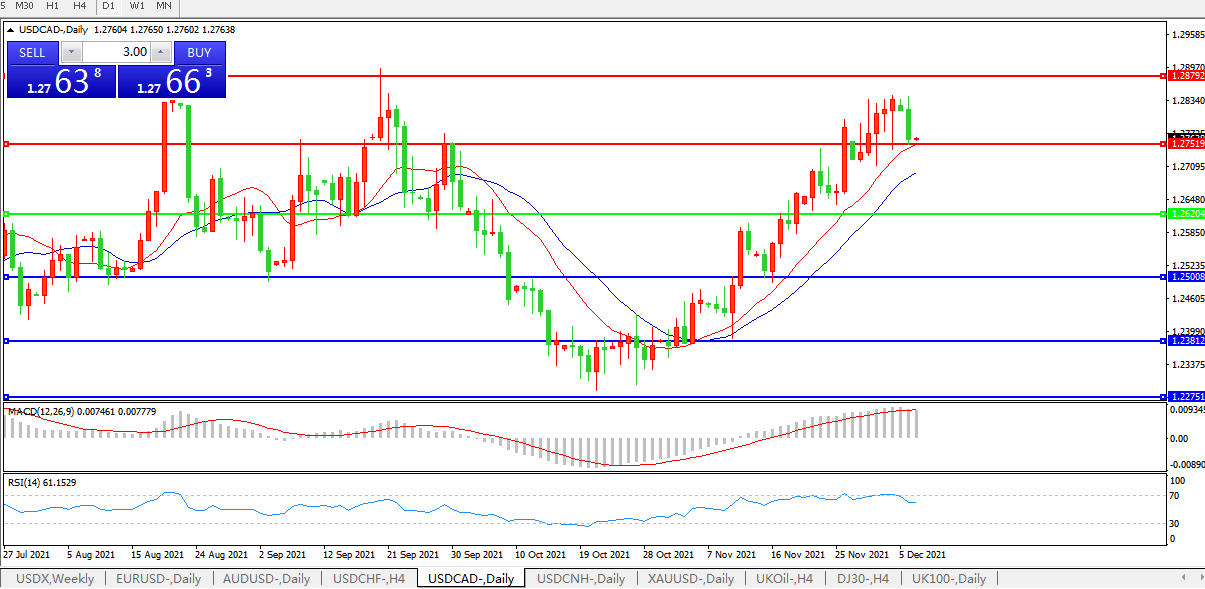 美元兑加元USDCAD 日线图: