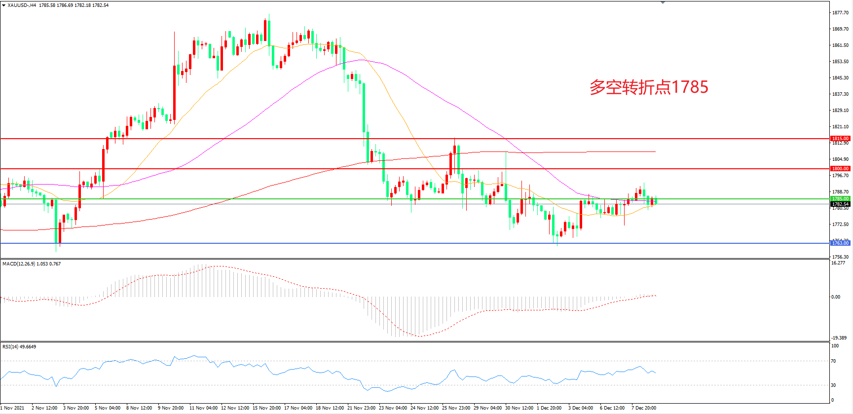 交易策略:在1785.00之下看跌,目标1763.00 1750.00