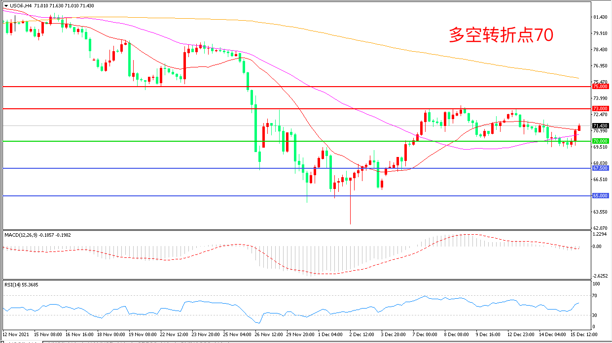 交易策略:在70.00之上看涨,目标73.00 75.00