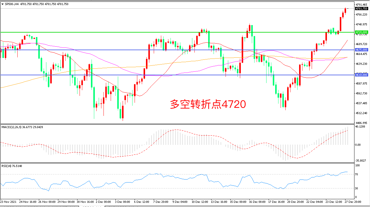 交易策略:在4720.00之上看涨,目标4800.00                           4880.00