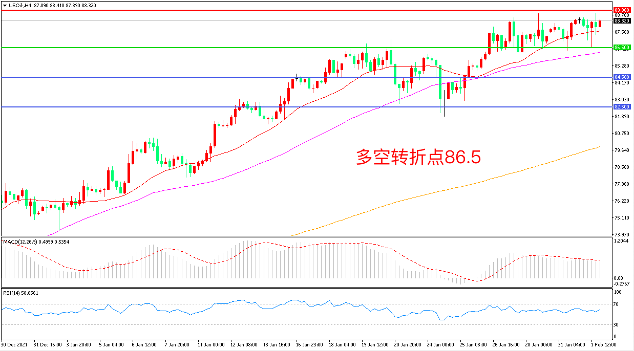 交易策略:在86.50之上看涨,目标89..00 92.00
