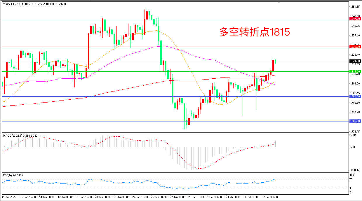 交易策略:在1815.00之上看涨,目标1830.00       1847.00