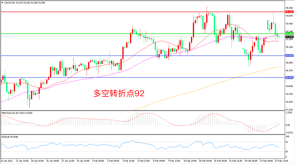 交易策略:在92.00之上看涨,目标95.00 98.00