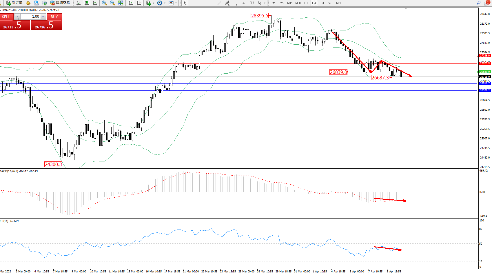 交易策略:26839下方看跌,目标26519、26328