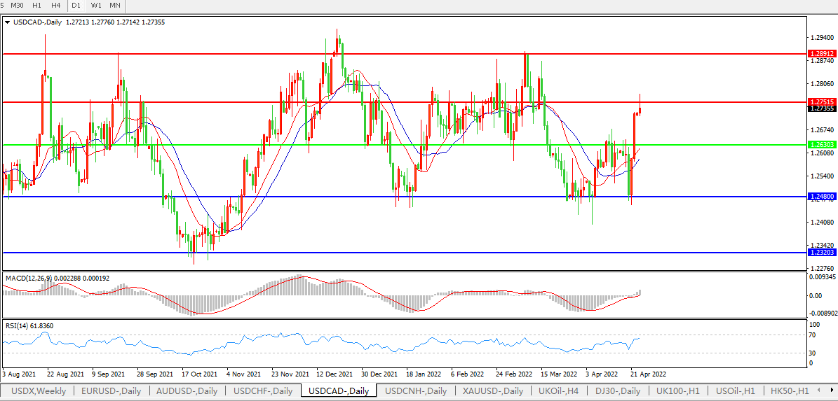 美元兑加元USDCAD 日线图: