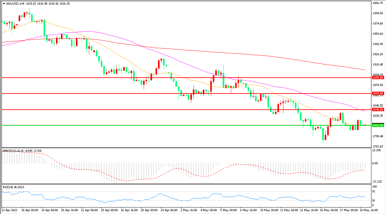交易策略:在1815.00之下看跌,目标1790.00 1765.00