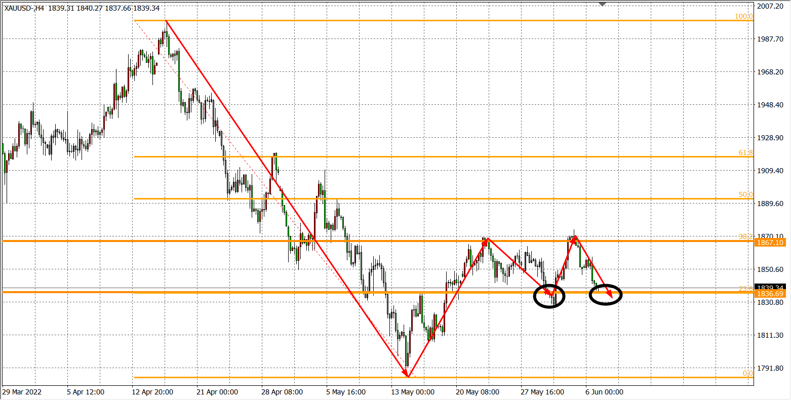 交易策略:在1836.00之下看跌,目标1820.00 1810.00