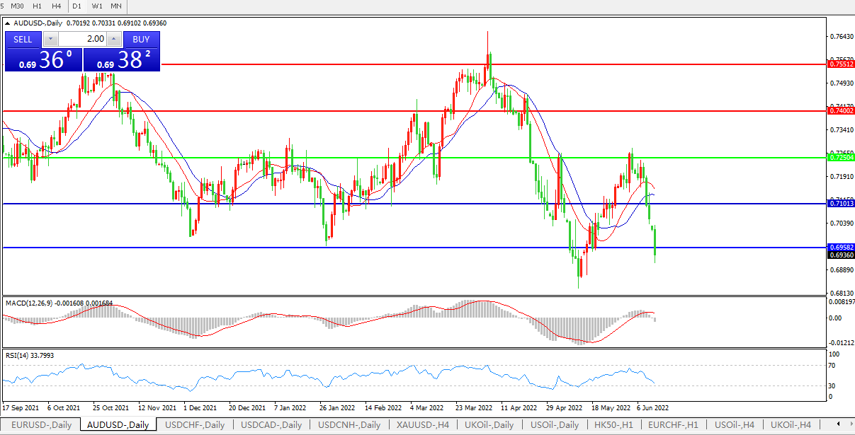 技术面简析:日图均线多头排列但短期均线拐头迅速,汇价加速下行,MACD运行于0轴附近且量能开始放量,RSI迅速走弱,预计汇价大概率将进一步下行。