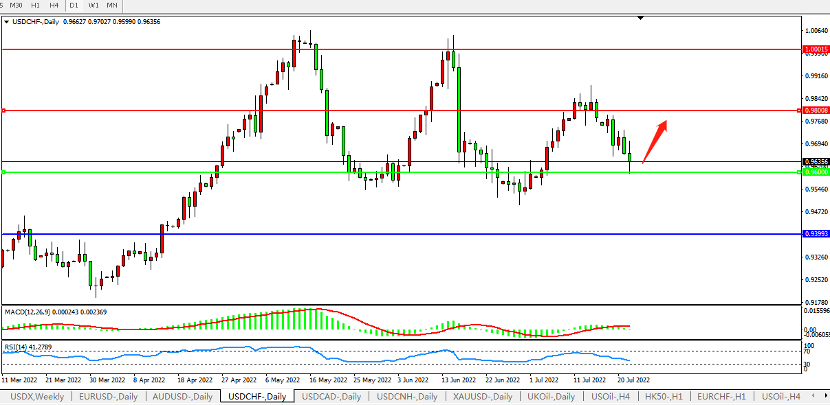 交易策略:0.9600上方看涨,目标0.9800,1.0000
