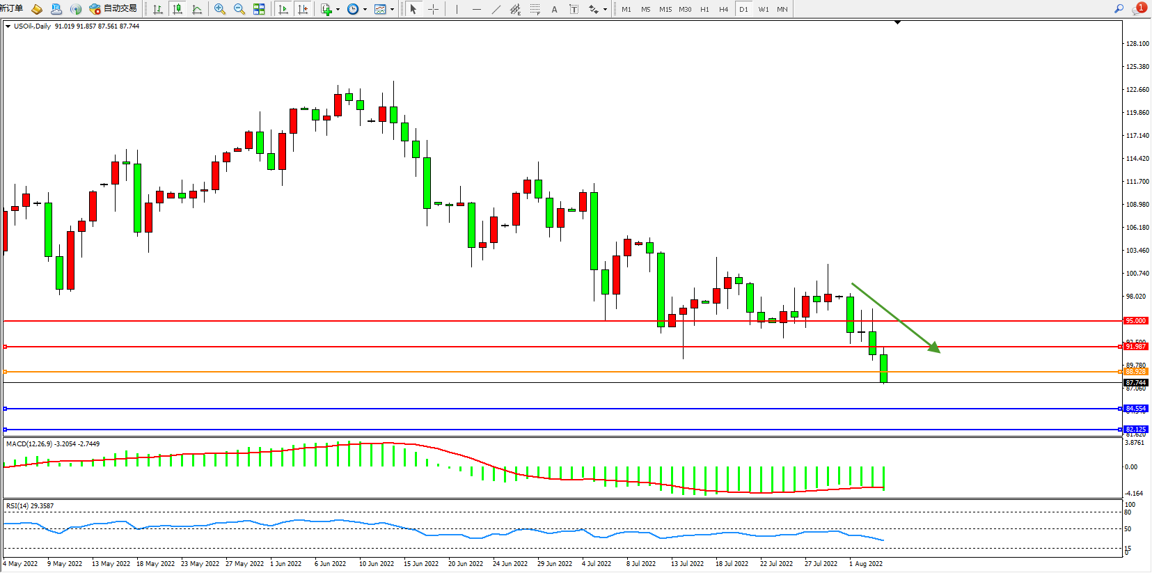 交易策略:88.928下方看跌,目标85.554、82.125