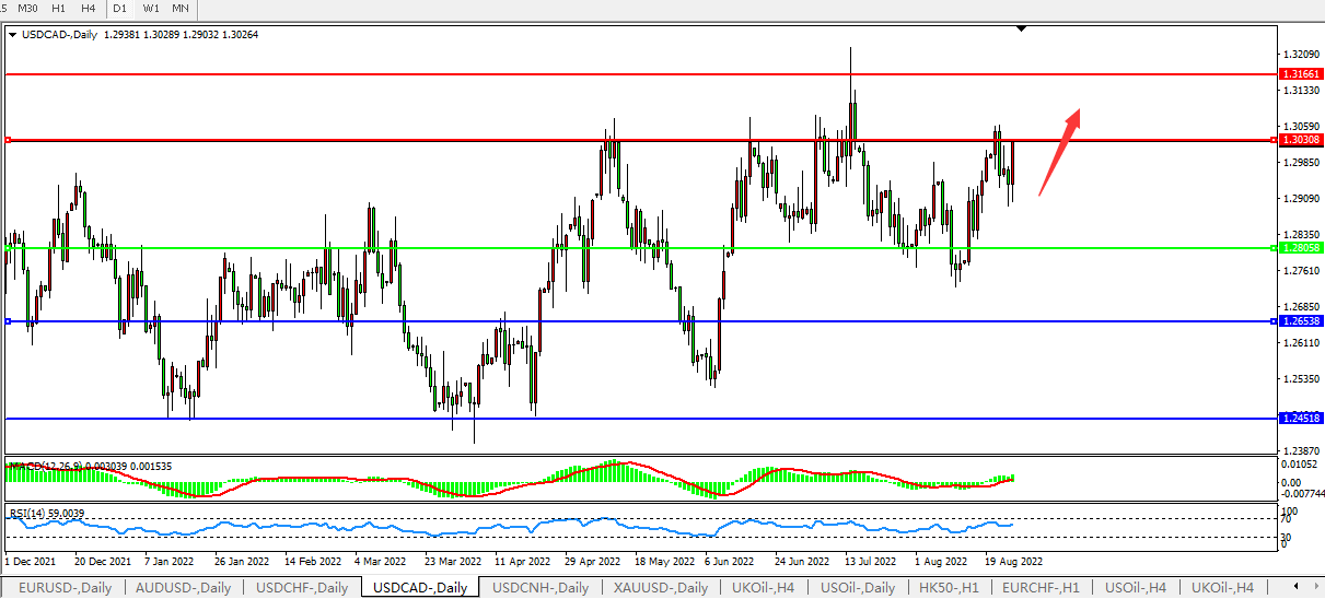 美元兑加元USDCAD  日线图: