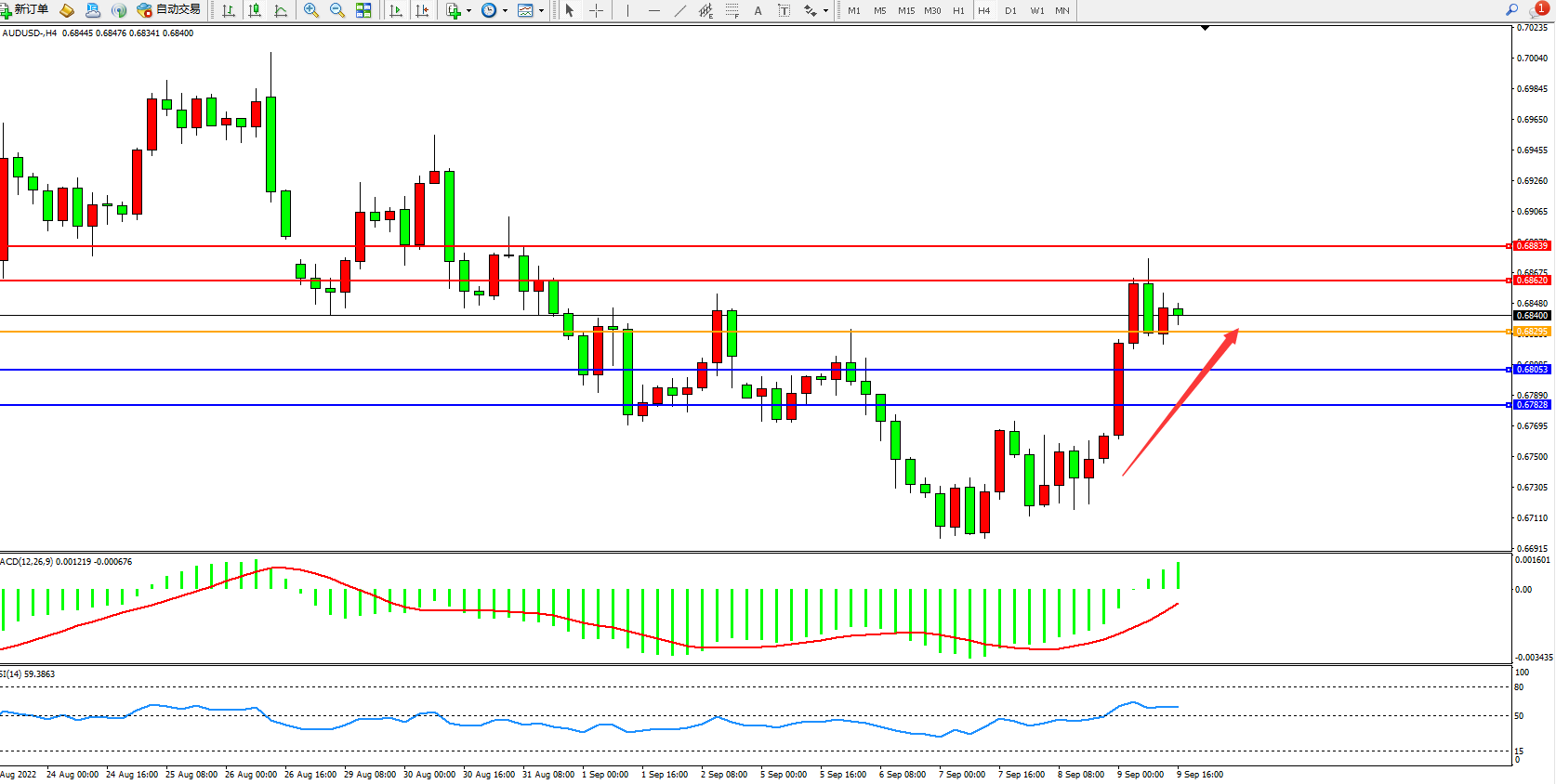 支撑位:0.68053、0.67828