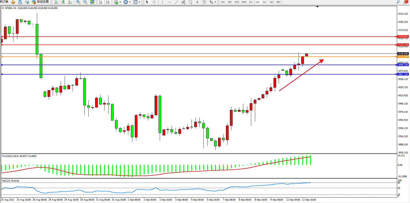 标普SP500——4小时K线图显示:
