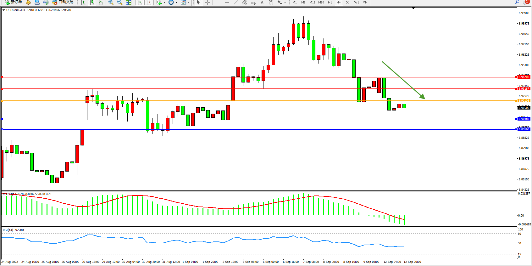 交易策略:6.92106下方看跌,目标6.90487、6.89566
