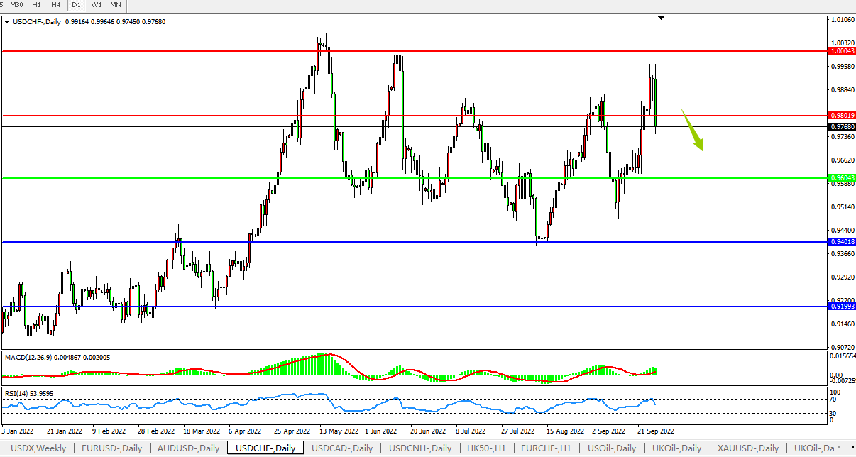 美元兑瑞郎USDCHF 日线图