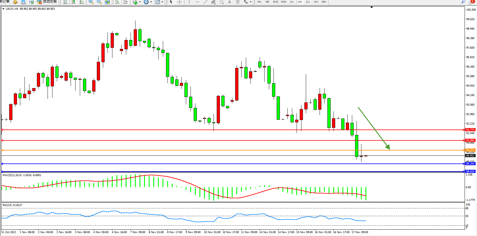 布油UKOil——4小时K线图显示: