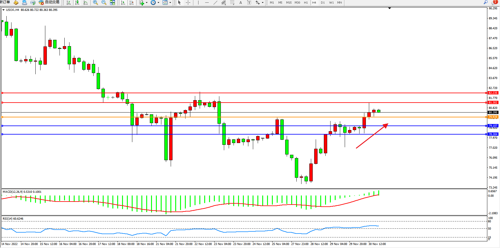 美元兑人民币维持7.04466附近震荡,11月份中国制造业采购经理指数为48%,较上月下降1.2个百分点。指数连续下降,表明受疫情多点频发影响,经济运行压力有所加大。