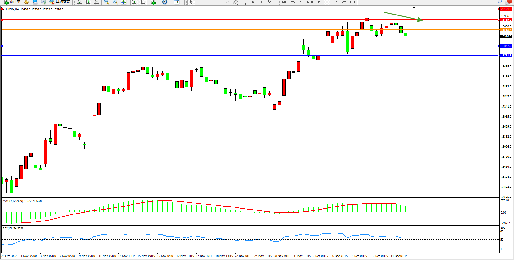 恒指HK50 4小时图