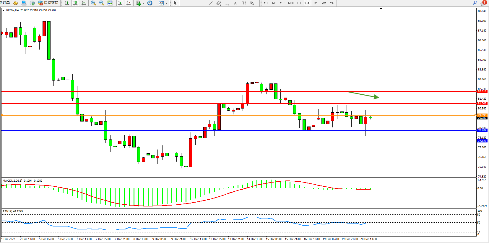 4小时图看:短期维持窄幅整理平移,市场多头动力均处于焦灼状态,尚未有多空动力涌现,MACD指标处于0轴线附近弱势徘徊,RSI指标处于50均衡线附近弱势徘徊中;