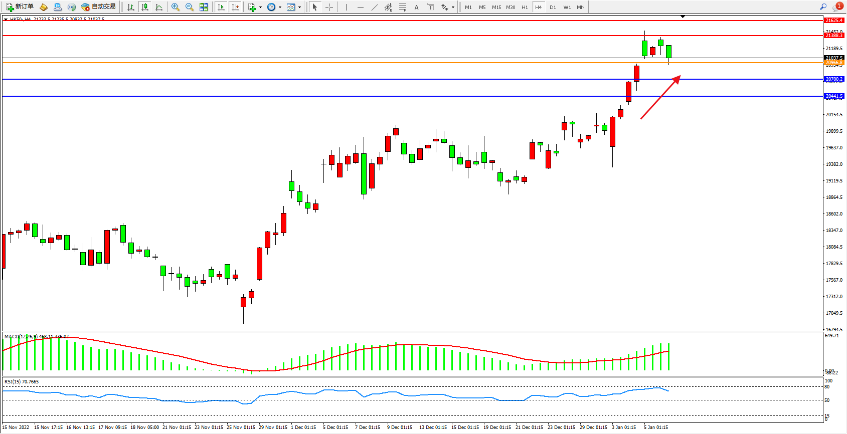 恒指HK50 4小时图