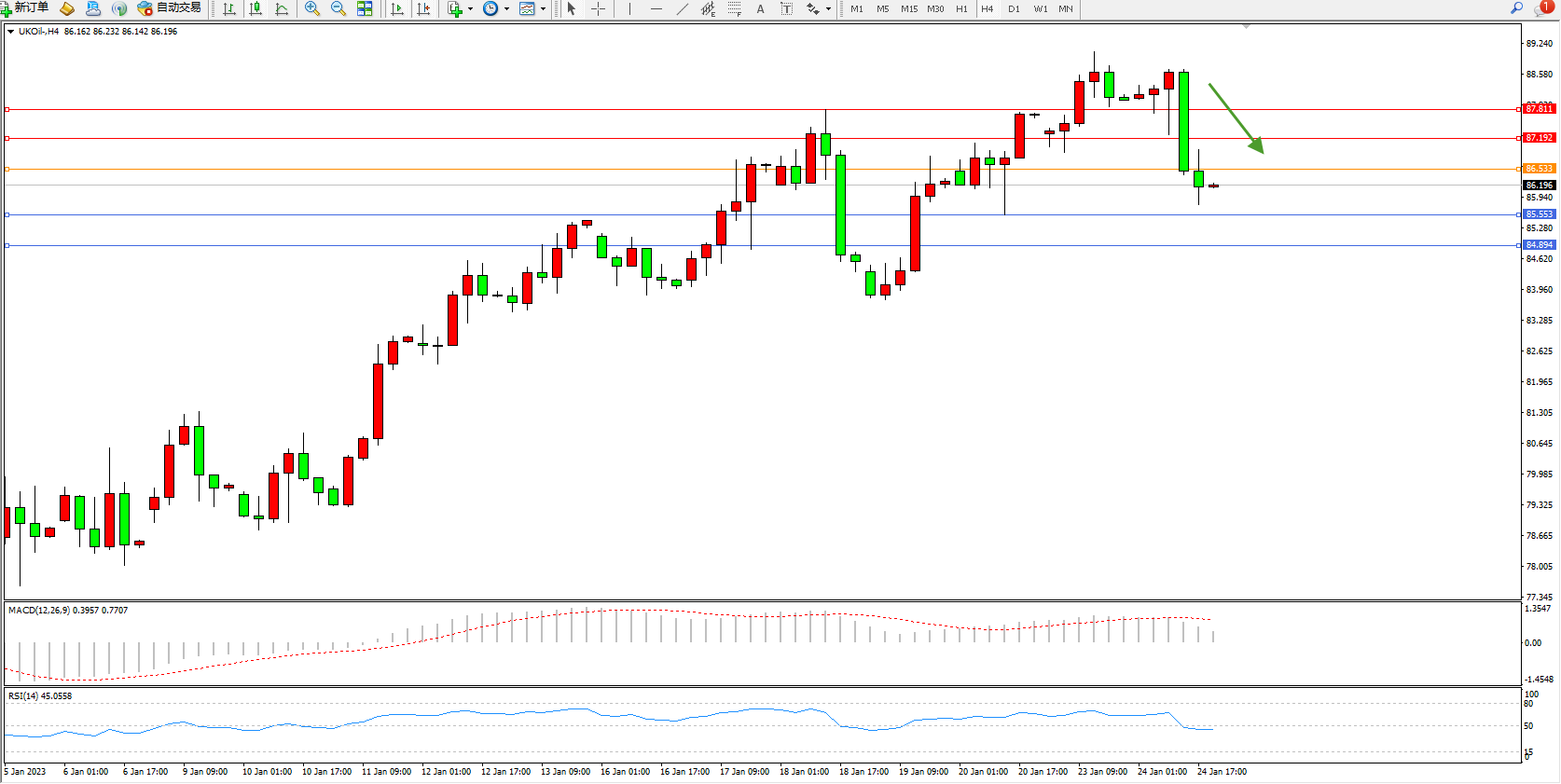 布油UKOil——4小时K线图显示: