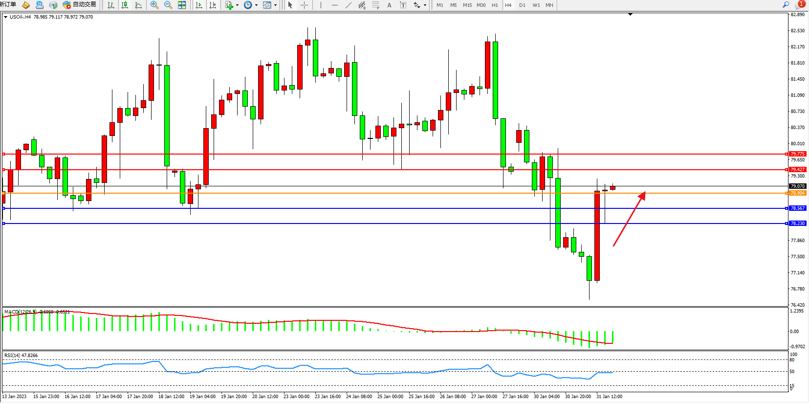 原油维持79.070附近震荡,全球央行进一步加息威胁,OPEC+本周料维持现行产量政策不变。投资者须进一步研判俄罗斯供应前景,该国将从2月1日起的五个月内禁止向遵循价格上限的国家出口石油。
