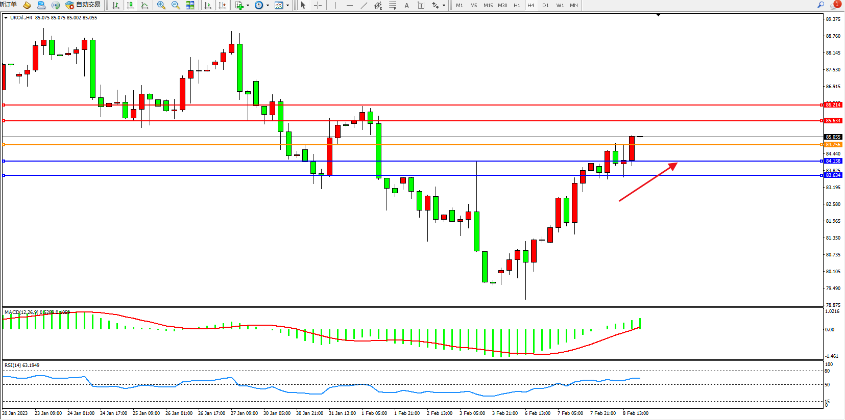 布油维持85.055附近震荡,由于美联储加息步伐放缓,市场希望这个全球最大经济体和石油消费国能够避免经济活动急剧放缓甚至衰退,避免石油需求下滑。