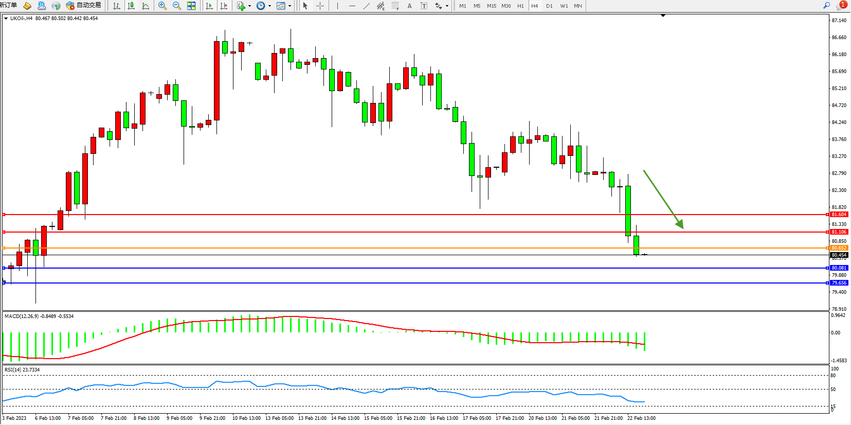 交易策略:80.652下方看跌,目标80.081、79.656