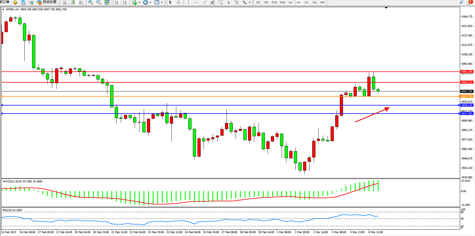 标普SP500——4小时K线图显示: