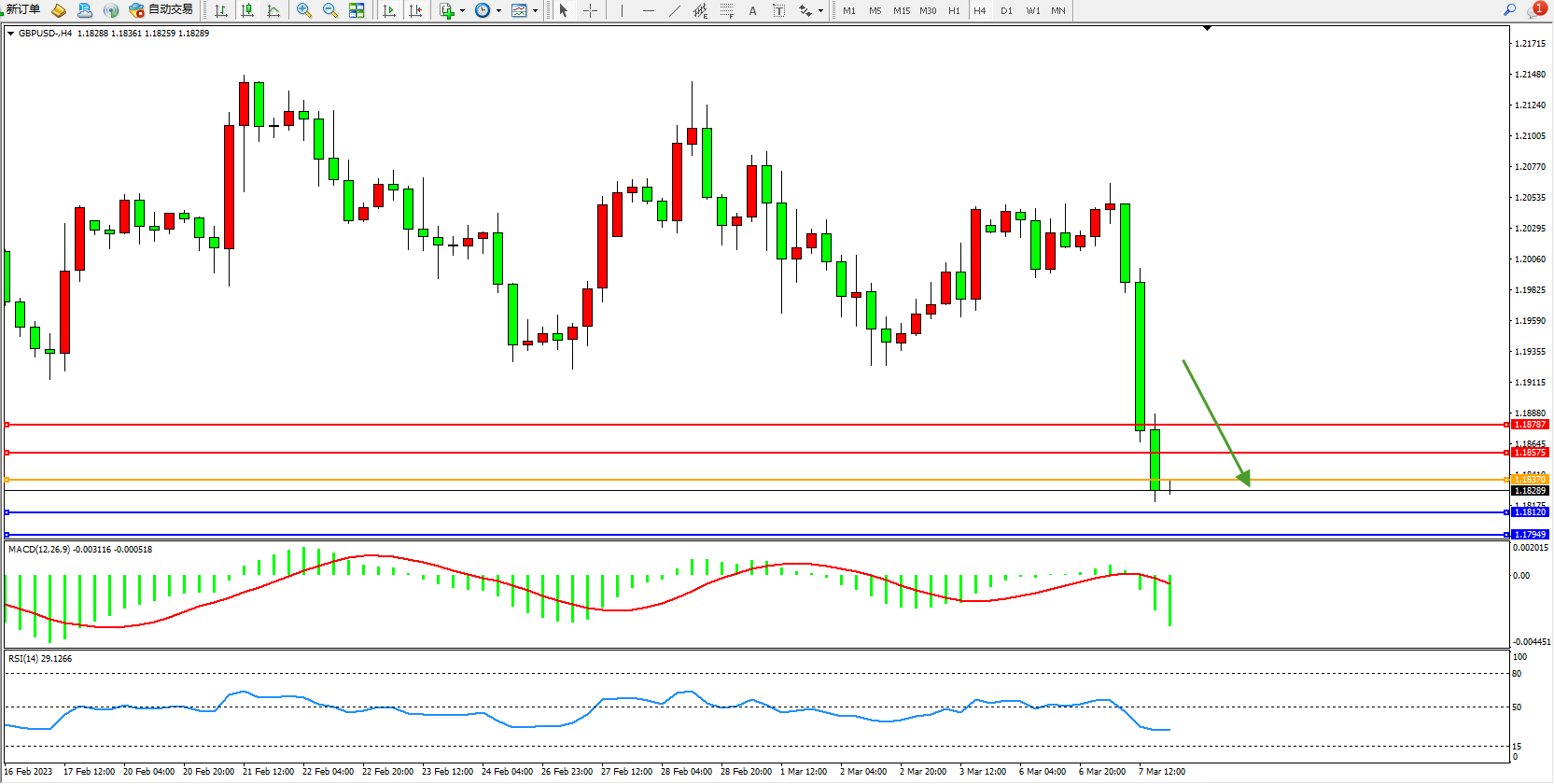 交易策略:1.18370下方看跌,目标1.18575 1.18787