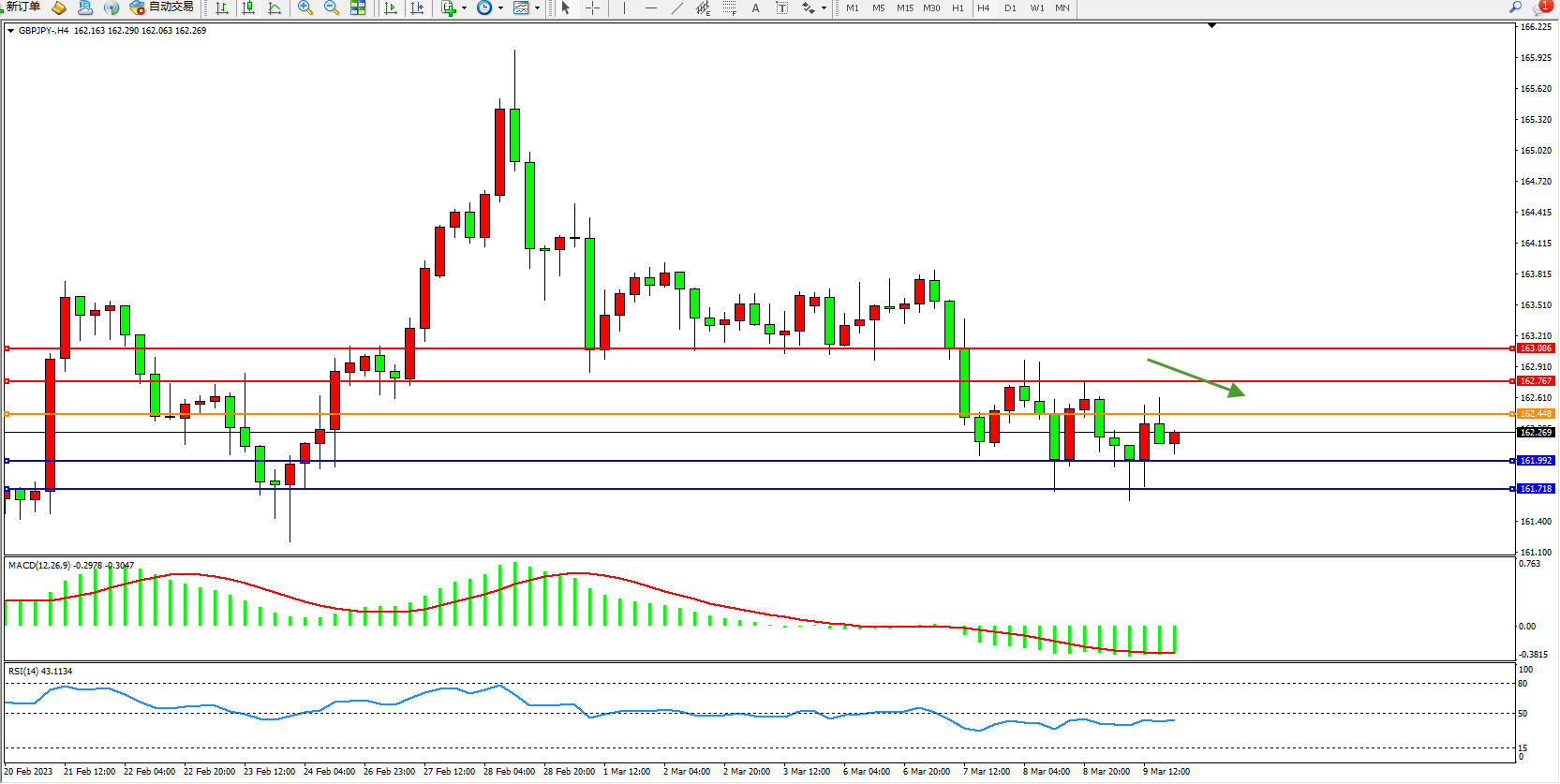交易策略:162.448下方看跌,目标161.992 161.718