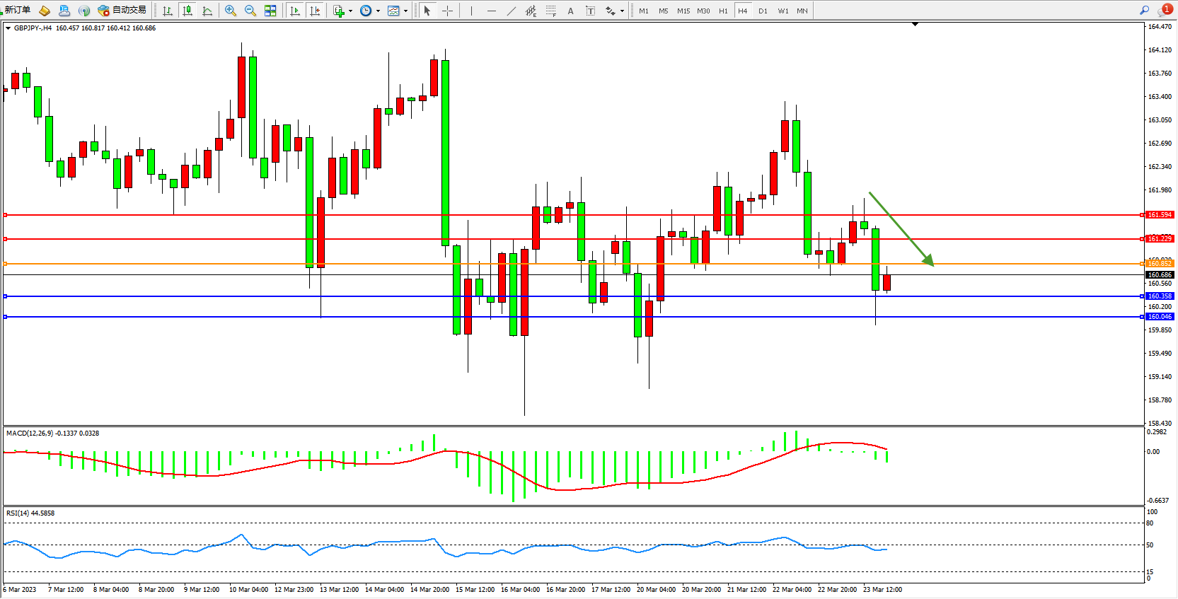 交易策略:160.852下方看跌,目标160.358 160.046