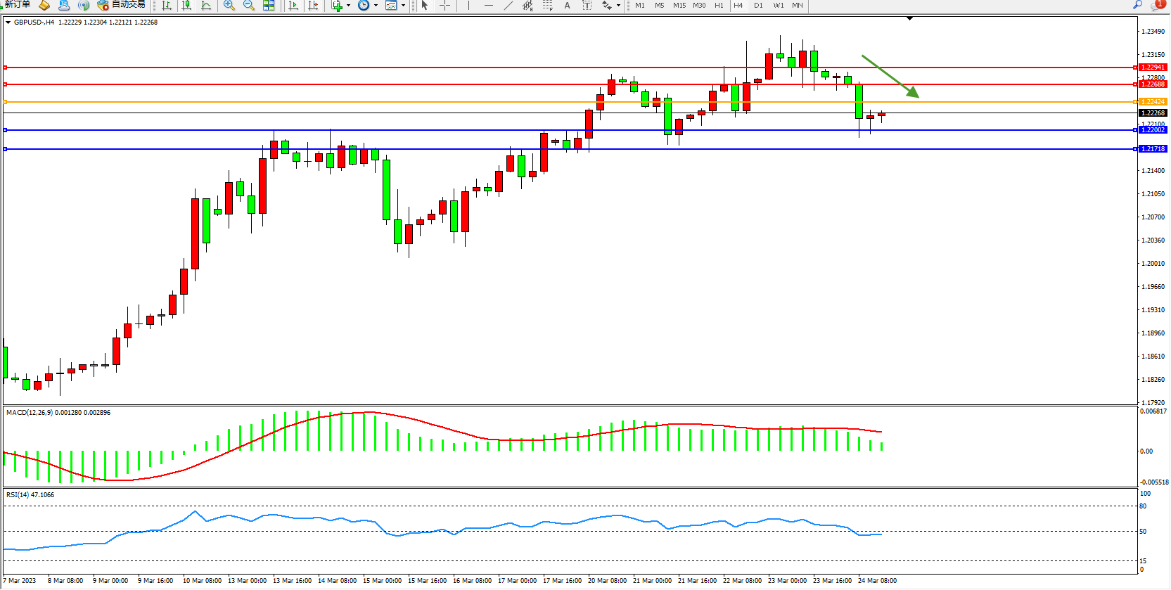 交易策略:1.22424下方看跌,目标1.22002 1.21718