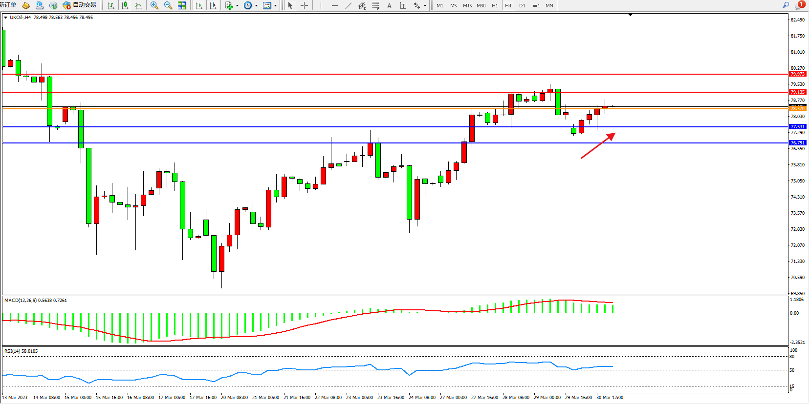 布油UKOil——4小时K线图显示:
