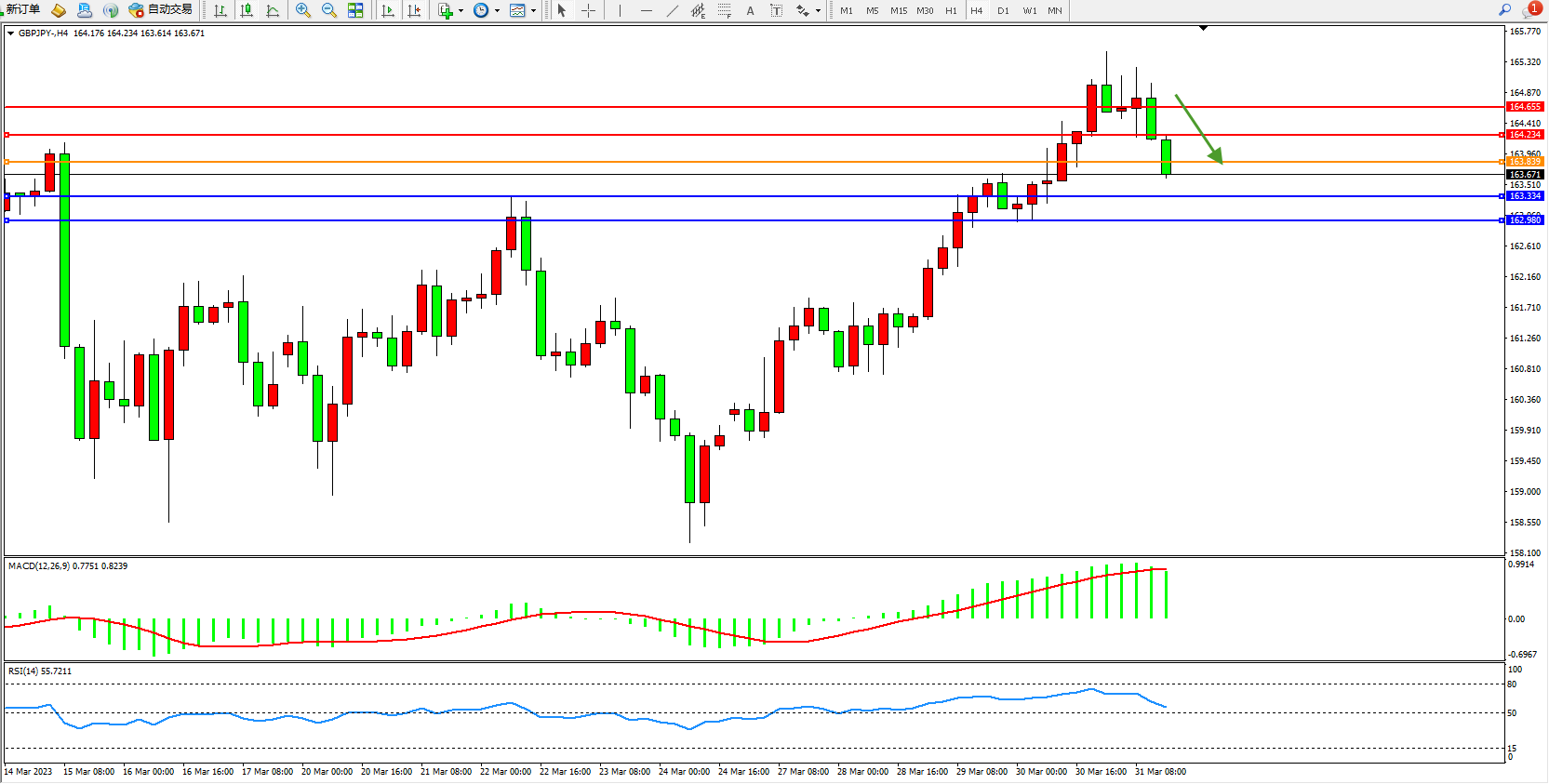 交易策略:163.839下方看跌,目标163.334 162.980