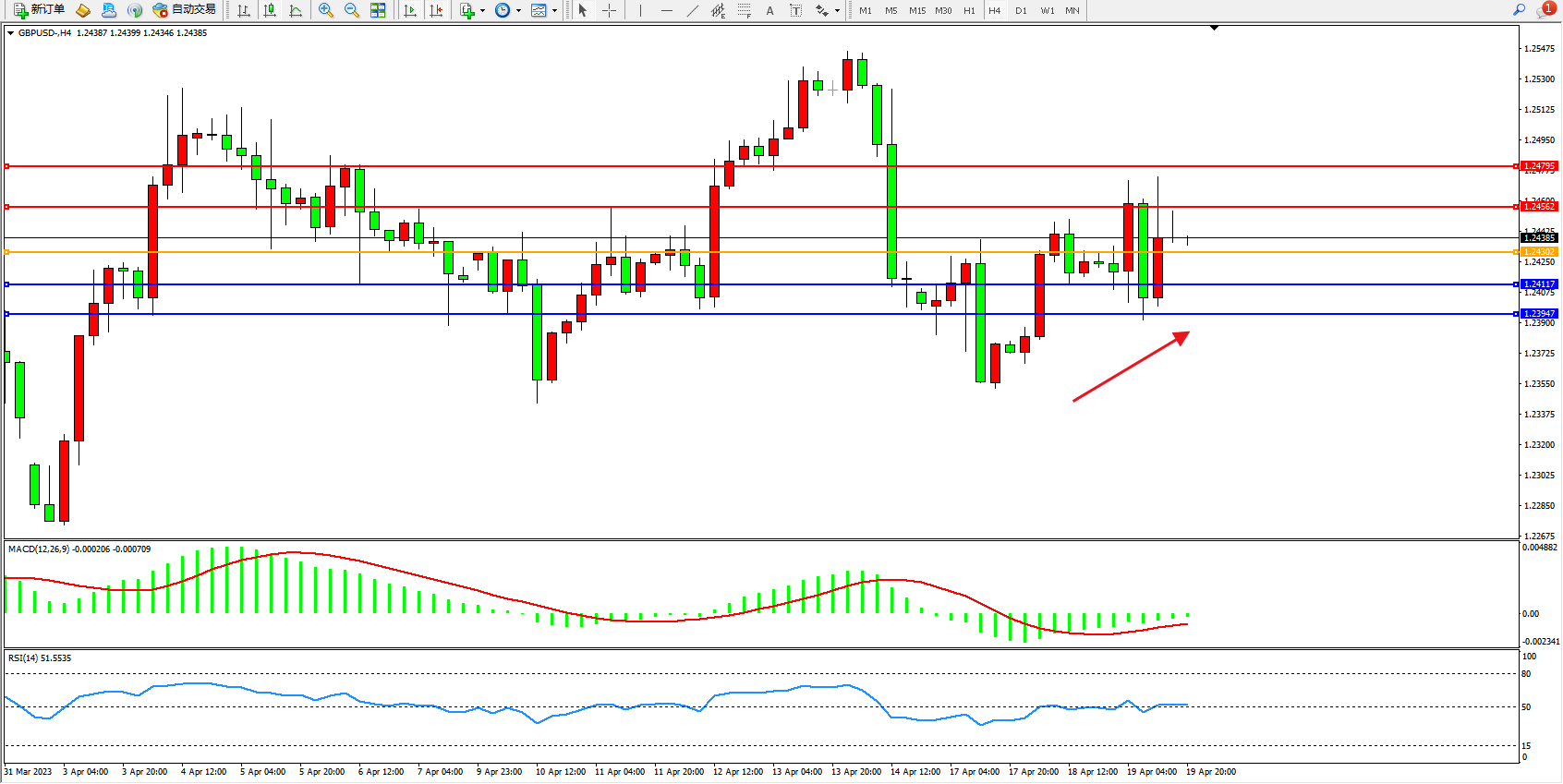 交易策略:1.24302上方看涨,目标1.24562  1.24795
