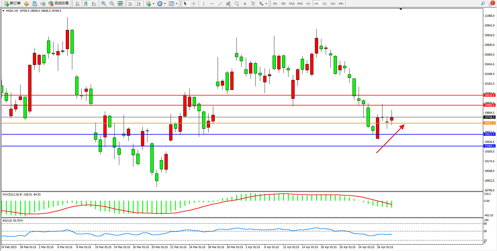 恒指HK50 4小时图