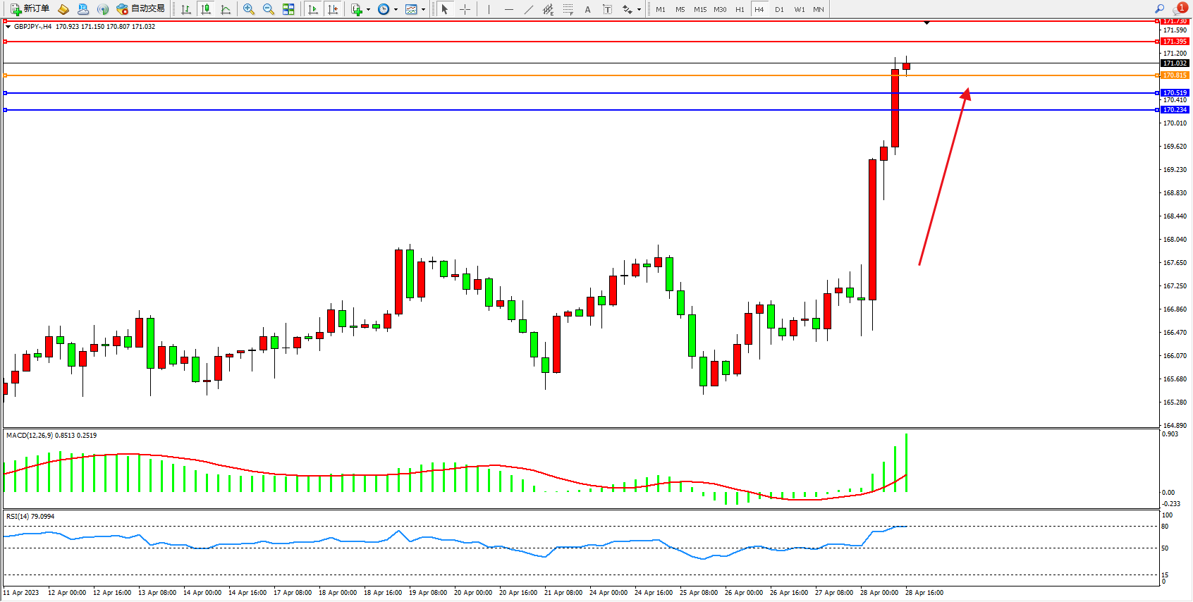交易策略:170.815上方看涨,目标171.395 171.730