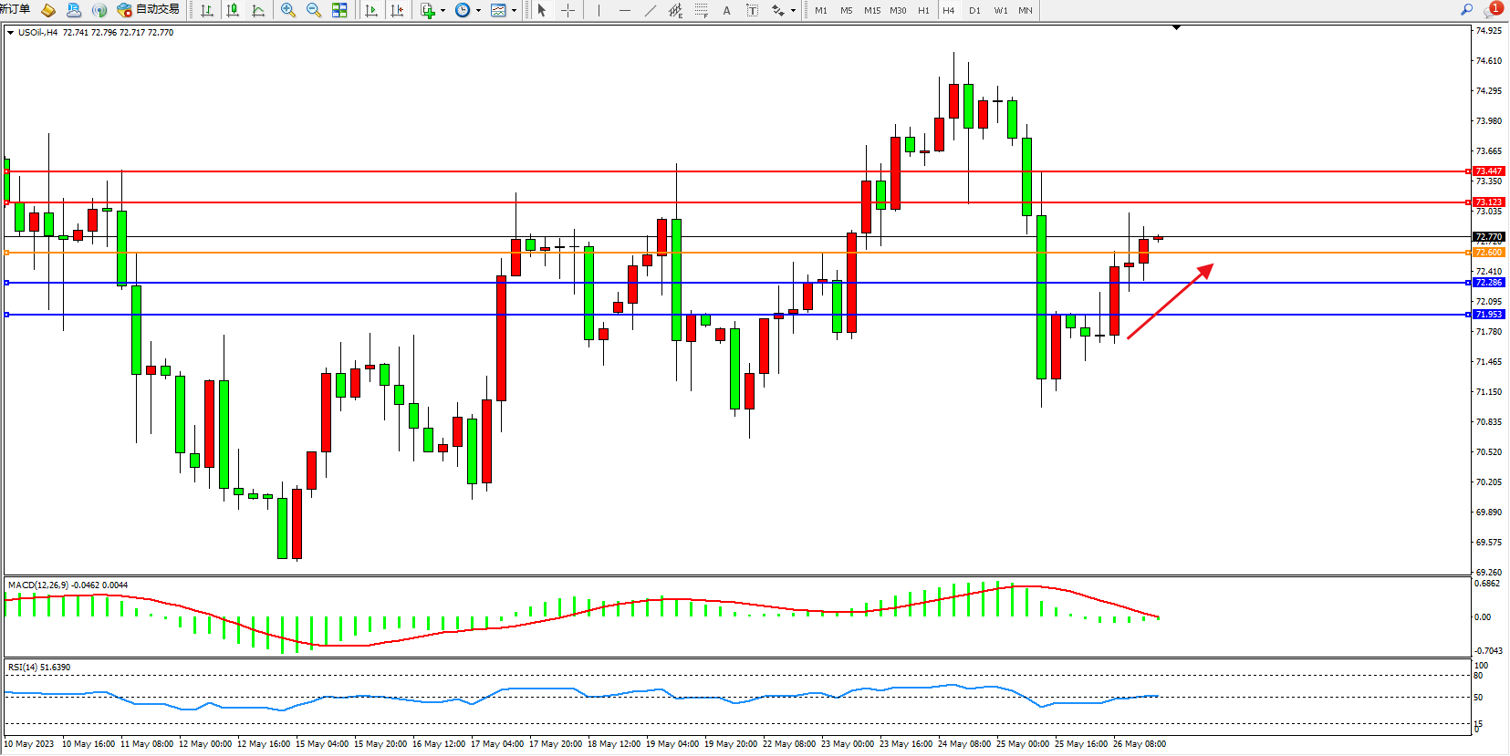 原油维持72.770附近震荡,在下一次欧佩克+政策会议之前,俄罗斯和沙特阿拉伯就供应前景发出相互矛盾的信息,需求增长弱于预期也影响了市场情绪。尽管从积极的方面来看,OPEC+5月份供应下降规模与早前达成的进一步减产协议基本一致。