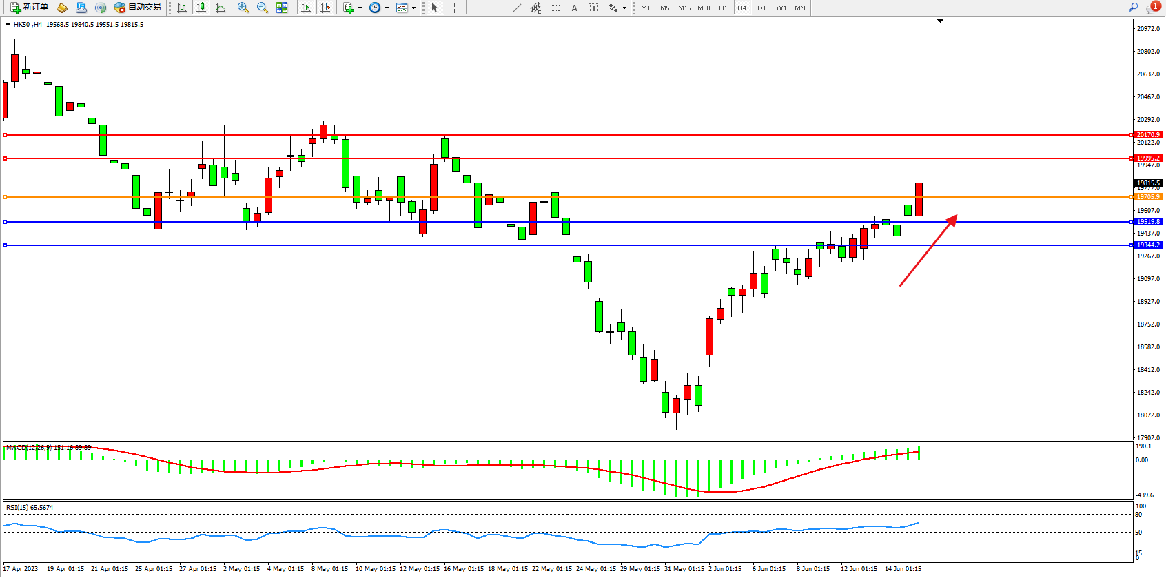 恒指:多头上扬