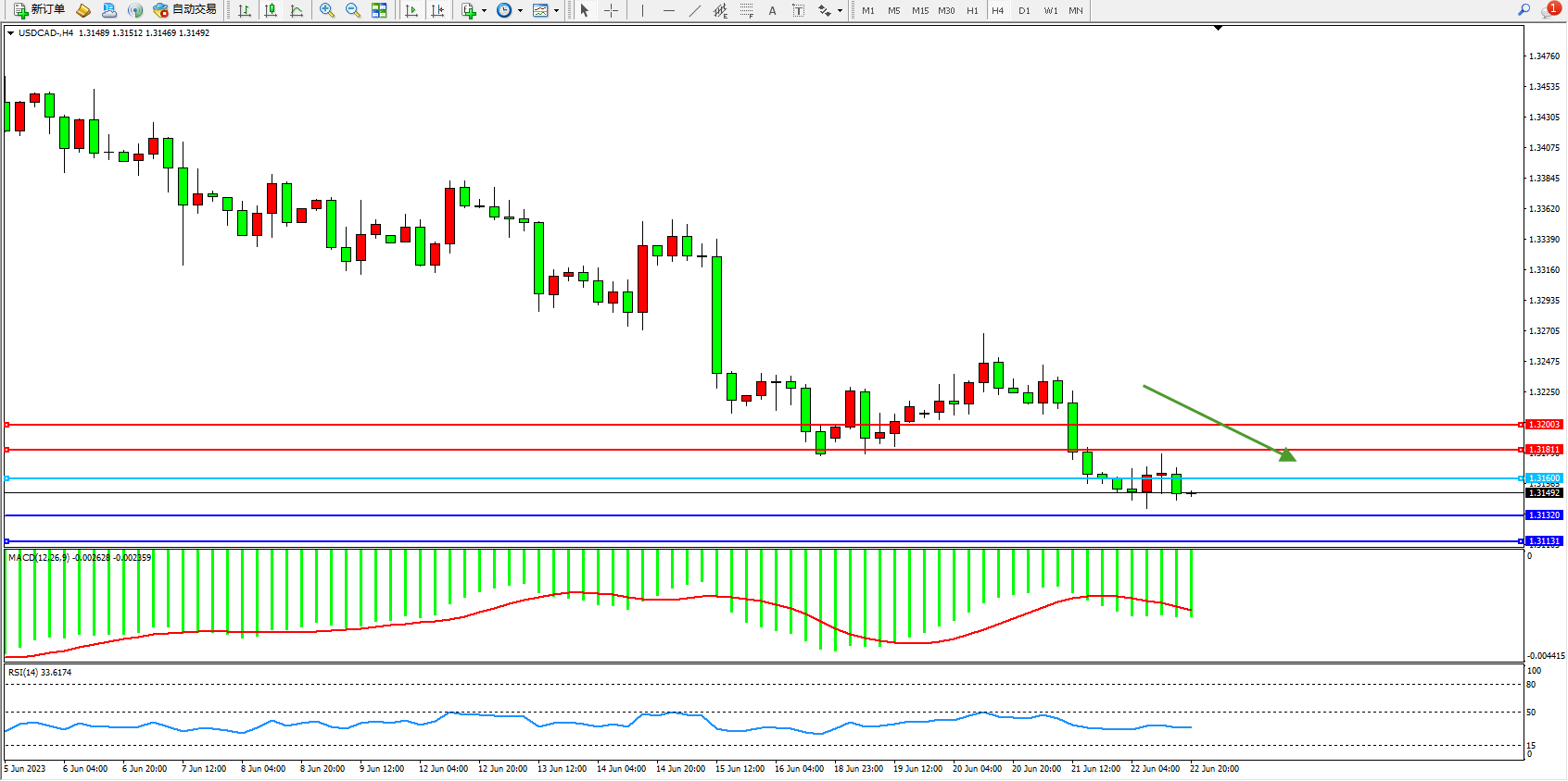 美元加元USDCAD——4小时K线图显示: