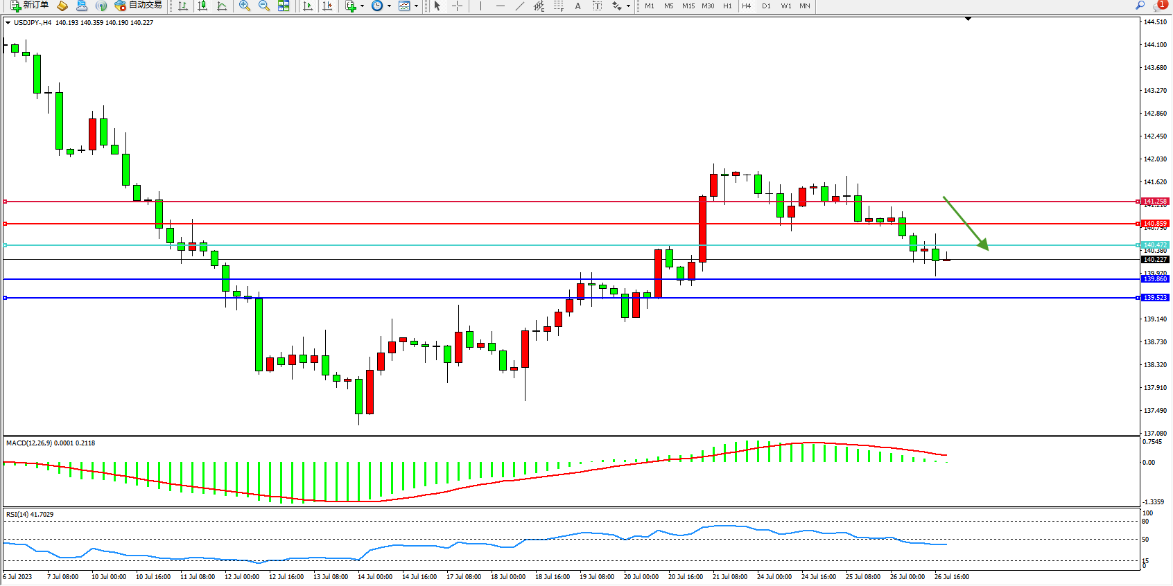 交易策略:140.472下方看跌,目标139.860 139.523
