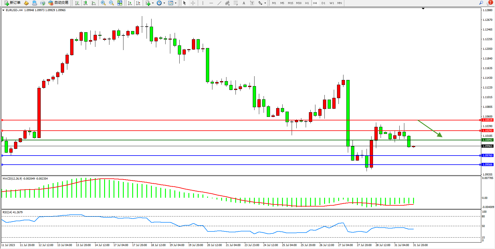 EURUSD:震荡下移