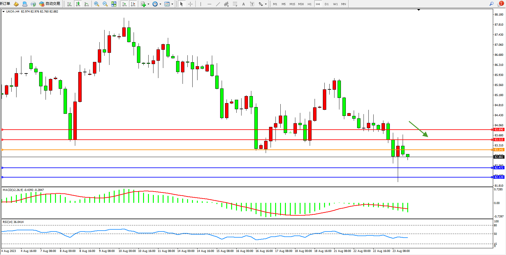 交易策略:83.141下方看跌,目标82.472 82.120