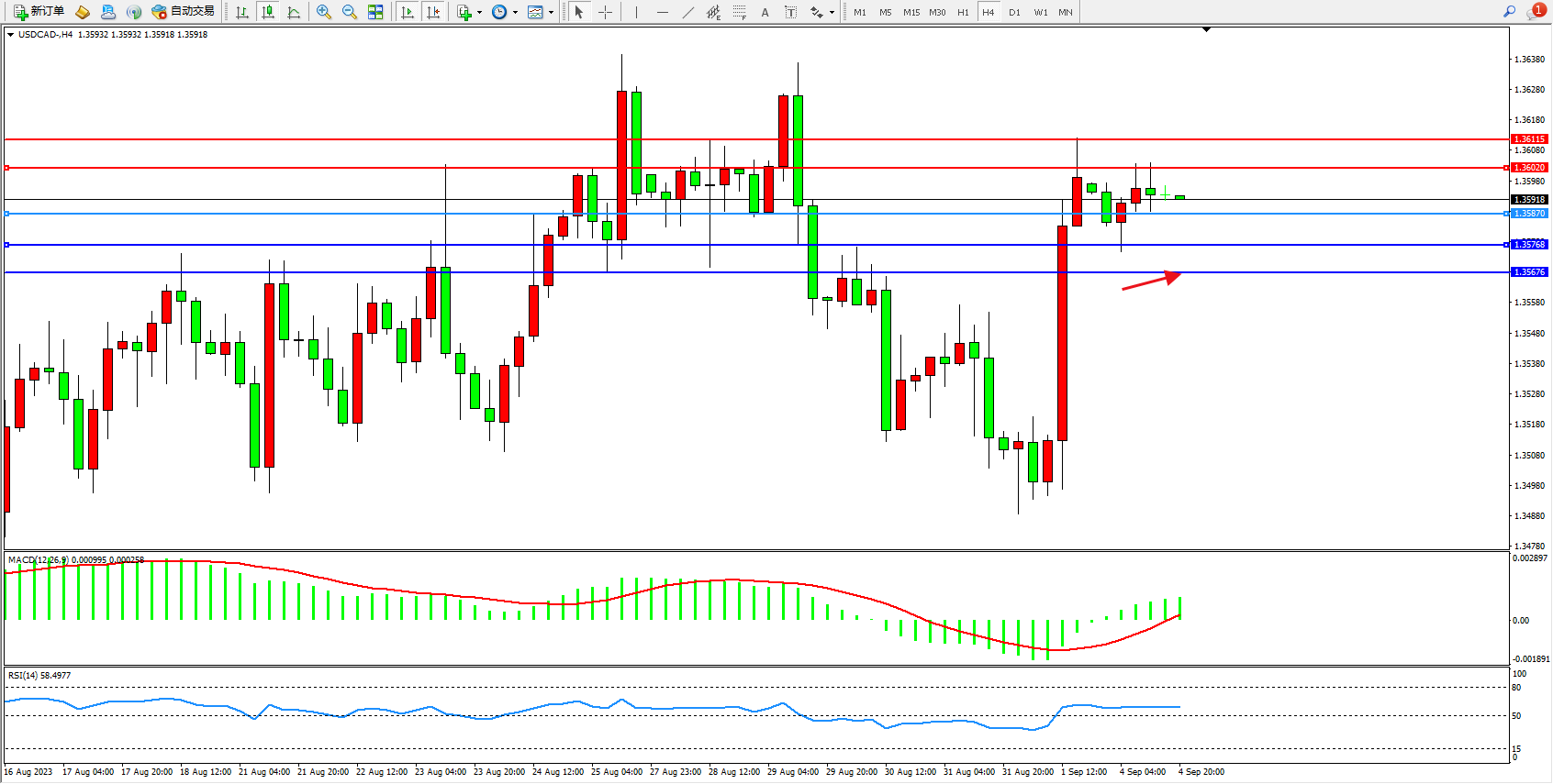美元加元USDCAD——4小时K线图显示: